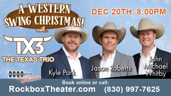 Rockbox Theater proudly presents- A Western Swing Christmas featuring The Texas Trio with Kyle Park, Jason Roberts and Michael Whitby.